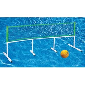 Turn your pool into a fun gaming center with the Halex Splash Power volleyball and badminton set. The Splash Power starts with a floating 72-by-28-1/4-inch volleyball frame, with form flotation supports that keep the frame above water. Strung across the frame is a three-ply, sleeve-style 1-1/2-inch black mesh net that serves as both a volleyball and badminton net. Completing the set is a vinyl volleyball that comes with its own inflating pump and needle, two molded badminton rackets, and two EVA tip shuttlecocks. Water polo and basketball are no longer the only pool games in town.